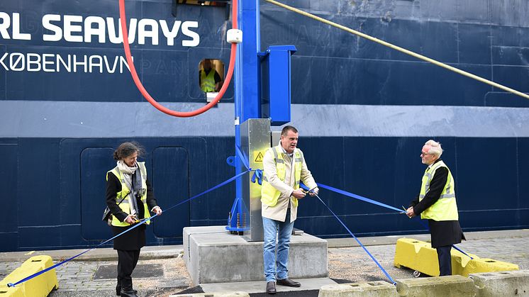 Köpenhamns första landströmsanläggning har invigts för DFDS-färjorna